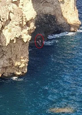 Rus gencin falezlerden atlamadan önce, çevresindekilerle yaşadığı diyalog cep telefonu kameralarına yansıdı. Bir grup gencin yanına gelen Rus, "Beni kameraya çekin. Falezlerden atlayacağım" dedikten sonra atlama yapacağı noktaya gidiyor. Burada tişörtünü çıkartan genç, 40 metre yükseklikten denize atlıyor. Bu anları cep telefonu kamerasıyla kaydeden kişinin, "Bir arkadaşıyla iddiaya girmiş. Atlayacağını söyledi ve atladı. Vallahi helal olsun. Daha önce 90 metreden atlamış. Biraz dinlendikten sonra bu tarafa yüzecekmiş. Şimdi kayalıklara tutundu" sözleri kayıtlara yansıdı. Gencin denize atlama anını çeken kişi, "Abi hareket etmiyor" dedikten sonra kaydı sonlandırıyor.
