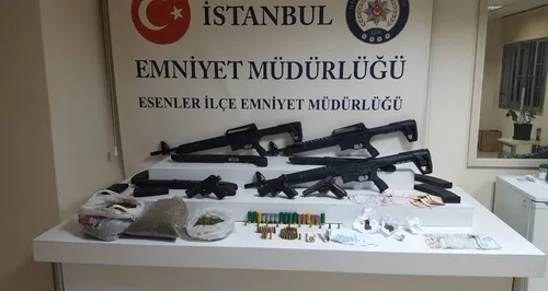 Esenler ilçesinde; 1 kilo 113,17 gram bonzai, 3 gram kubar, 50 adet uyuşturucu hap, 8225 TL para, 6 adet pompalı tüfek ile 17 adet tüfek fişeği, 3 adet tabanca ile 75 adet fişek ele geçirildi. Ali Can Ç. (18), Aykut K. (31), Murat A. (22), Hasan A. (60), Nesim A. (31), Ömer A. (25), Mesut A. (33), Cesim A. (38), Muhammet A. (24) isimli şahıslar yakalanarak gözaltına alındı.