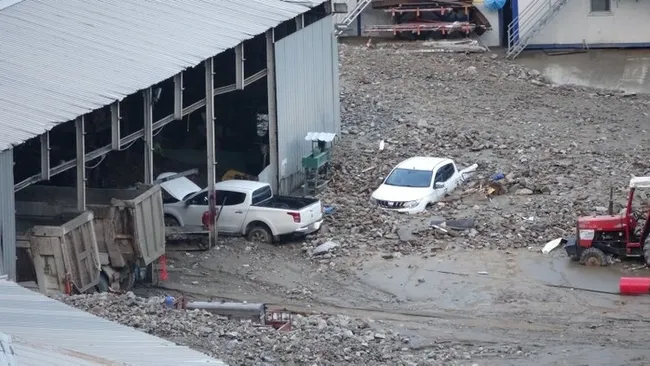 Yusufeli Barajı şantiyesinde de su baskını yaşandı. Selden kaçarak kurtulan işçiler, güvenli bölgelere sığındı. Şantiyede çalışanlara ait park halindeki onlarca araç ile iş makineleri balçığa gömüldü. Şantiyedeki hasar, gün ağarınca ortaya çıktı.