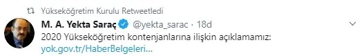 2020 YÜKSEKÖĞRETİM KONTENJANLARINA İLİŞKİN AÇIKLAMA