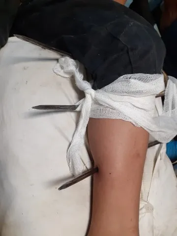Kars'ın Susuz ilçesinde ot toplayan Nazim Samet Ürün'ün (13), bacağına dirgen saplandı. Hastaneye kaldırılan Ürün'ün bacağındaki dirgen, AFAD ekipleri tarafından 3 dişi kesilerek, çıkarıldı.