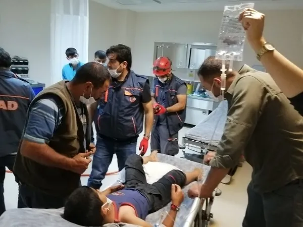 Bacağına saplanan dirgenle hastaneye kaldırıldı