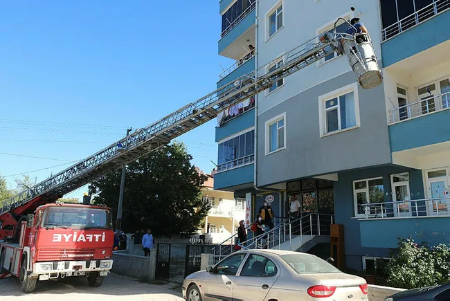Mahalle sakinlerinin ihbarı ile olay yerine gelen ilçe Emniyet müdürlüğü ekipleri 4. kattaki eve itfaiye ekipleri ile birlikte girerek yaşamsal müdahaleyi yaptı.