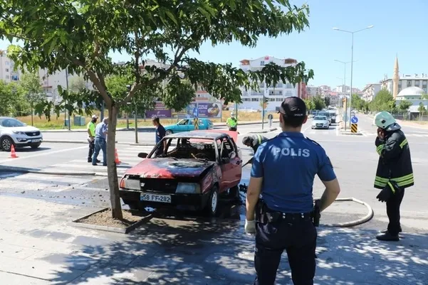 Otomobil bir anda alev almaya başladı. Durumun bildirilmesi üzerine olay yerine itfaiye ve polis ekipleri sevk edildi. Olay yerine gelen Sivas Belediyesi itfaiye ekipleri yanan otomobili söndürdü. Alevler içinde kalan otomobili çevredeki vatandaşlar cep telefonu kamerası ile kaydetti. Otomobil hurdaya dönerken, polis olayla ilgili inceleme başlattı.
