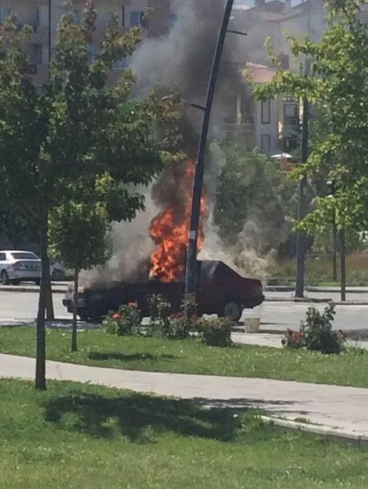 Sivas'ta bir otomobil kırmızı ışıkta beklediği sırada bomba gibi patladı. Aracın sürücüsü panikle araçtan uzaklaşırken, araç alev alev yandı. Sürücü, “Birden bire yanmaya başladı. Araba 93 model, 16-17 yıldır bende.'' dedi.