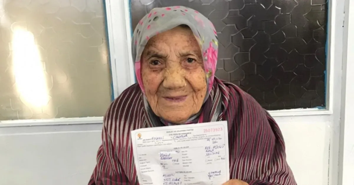 112 YAŞINDAKİ GÜLLÜ NİNE AK PARTİ'YE ÜYE OLDU