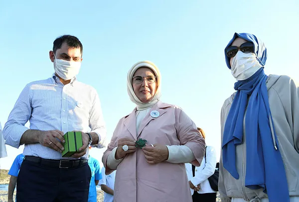 Cumhurbaşkanı Recep Tayyip Erdoğan'ın eşi Emine Erdoğan, Çevre ve Şehircilik Bakanı Murat Kurum ile birlikte Antalya’nın Kaş ilçesinde tedavisi tamamlanıp, takip için çip takılan 4 deniz kaplumbağasını denize uğurladığı törende çok güzel bir olaya şahitlik ettiklerini söyledi.