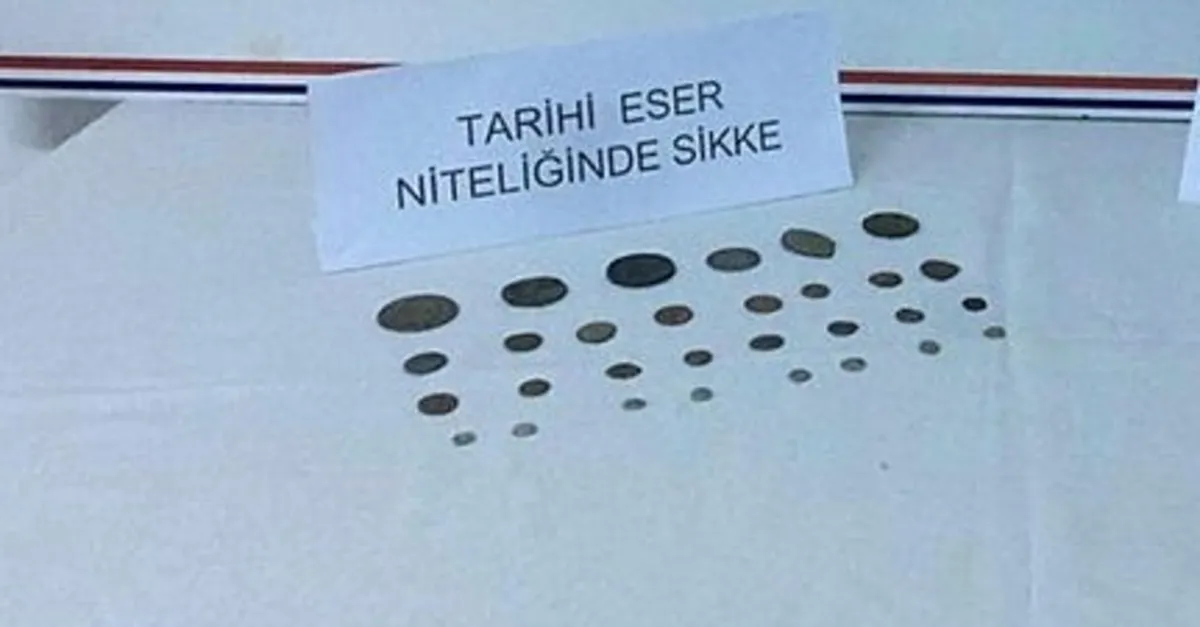Osmaniye'de ihbar üzerine durdurulan araçta yapılan aramada 1 adet mermer heykel ile 30 adet madeni sikke ele geçirildi. Olayla ilgili 2 kişi yakalandı.