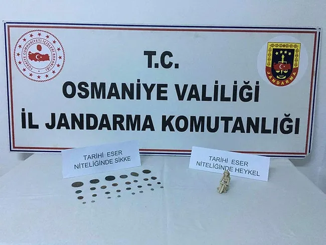 Osmaniye İl Jandarma Komutanlığı ekiplerince S.E. ve M.K. isimli şahısların bir araç ile kültür ve tabiat varlığı kaçakçılığı yapacağı yönünde duyum alınması üzerine şüphelinin kullandığı araç Osmaniye'nin Bahçe ilçesi Nohut köyünde durdurularak yapılan aramada 1 adet mermer heykel ile 30 adet madeni sikke ele geçirildi. Olayla ilgili olarak 2 şüpheli hakkında adli işlem başlatıldı.