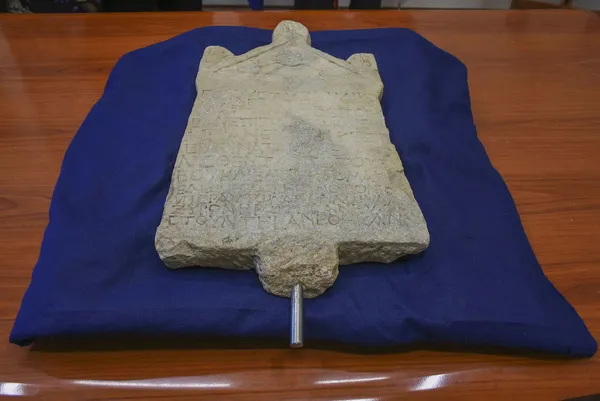 Kültür ve Turizm Bakanlığının yaptığı incelemeler sonucunda, 1800 yıllık yazıtın Manisa'nın Demirci ilçesinde yer alan Saittai Antik Kenti'ndeki Apollon Aksyros Tapınağı'ndan bir şekilde kaçırıldığı tespit edildi.