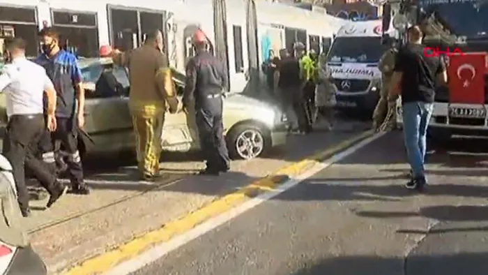 Son dakika: Beyoğlu'nda tramvayla otomobil çarpıştı