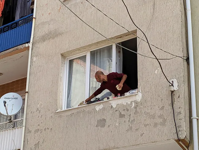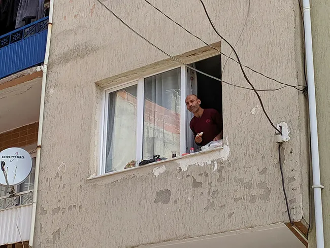 İzmir’de garip olay! Eşyaları sokağa atıp pencere kenarında kahvaltı