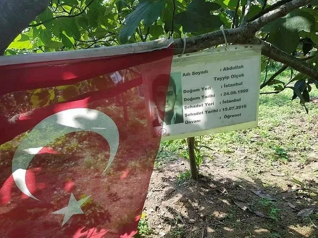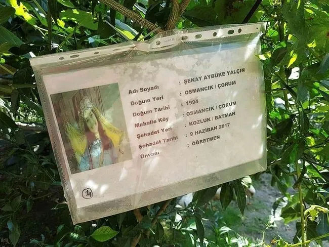 Muhtar Karaoğlan'ın ağaçlara ismini verdiği şehitler arasında Eren Bülbül, Ömer Halisdemir, öğretmen Şenay Aybüke Yalçın, Gaffar Okkan da var.