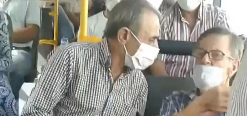 İzmir'de, şehir içi yolcu otobüsünde yolculuk eden bir kişi, yanına oturan kişiye sosyal mesafe kuralı gereği kalkması gerektiğini söyleyince, tartışma çıktı. Yolculardan birinin, diğerini kolundan tutup kaldırmaya çalıştığı anlar, vatandaşlar tarafından cep telefonuyla görüntülendi.