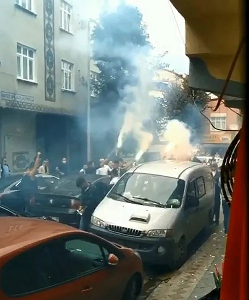 Sosyal mesafe ve maske takma kuralını da hiçe sayan gruptakilerden biri, belinden çıkardığı tabanca ile kalabalığa aldırış etmeden havaya ateş etmeye başladı. Bu anlar, mahalleli tarafından cep telefonu kameralarıyla kaydedildi.