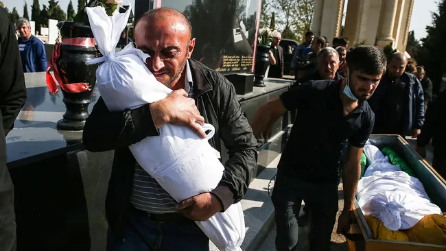 17 Ekim'de gerçekleştirilen alçak saldırıda 1'i bebek, 1'i çocuk olmak üzere 14 sivil Azerbaycanlı yaşamını yitirmiş, 50'den fazla kişi yaralanmıştı. Saldırının ardından henüz 6 aylık yeğeni Narin bebeğin kefene sarılı minik bedenine sarılıp gözyaşı döken Teymur Serkarov'un fotoğrafı Azerbaycan halkının yaşadığı acının boyutunu gözler önüne sermişti.