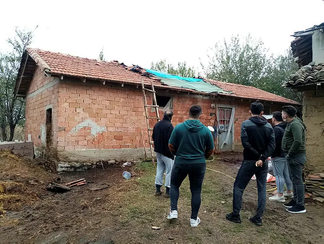 Yaylagöne Mahallesi'nde Hüseyin Erkoç'a ait büyükbaş hayvanların barındığı ahırda, süt makinesinin kablolarından yangın çıktı. Ahırın çatısı alevlere teslim oldu.