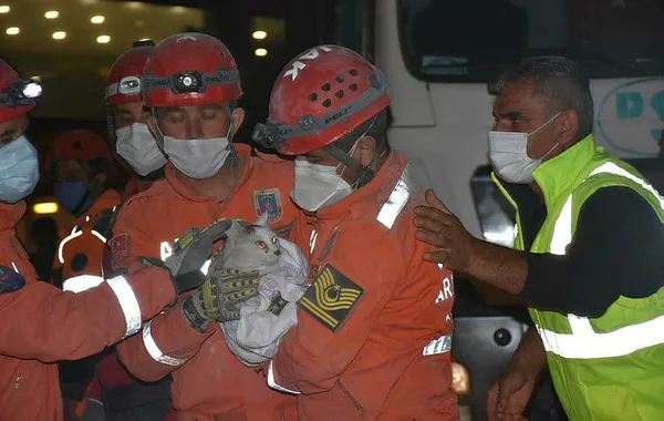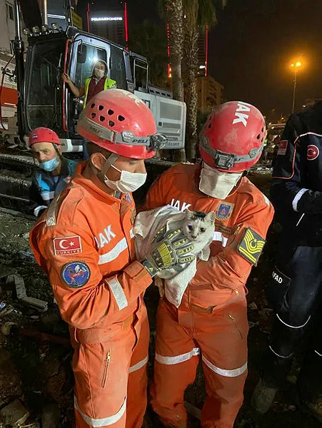 İzmir'de Rıza Bey Apartmanı enkazından bir kedi 75 saat sonra kurtarıldı