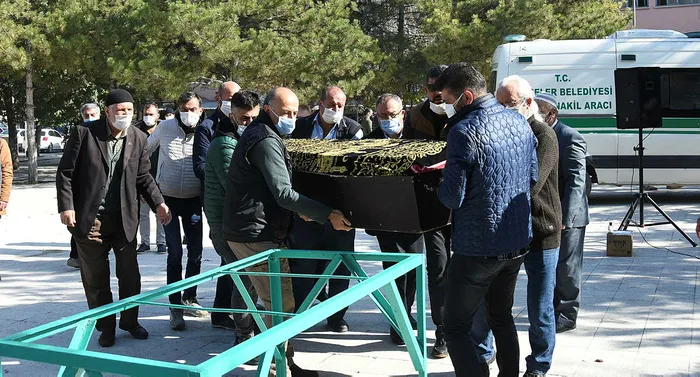 Yılmaz Erbek Apartmanı'nın enkazı altında kalarak yaşamını yitiren iki çocuk babası emekli Jandarma Astsubay Ramazan Ateş'in naaşı, Çarşı Camisine getirildi.
