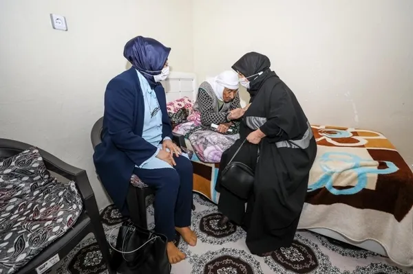 Emine ninenin oğlu ve gelini tarafından karşılanan Bilmez ve beraberindekiler, aile fertleriyle bir süre sohbet ederek Emine ninenin sağlığı ve ailesinin durumu hakkında bilgi aldı.