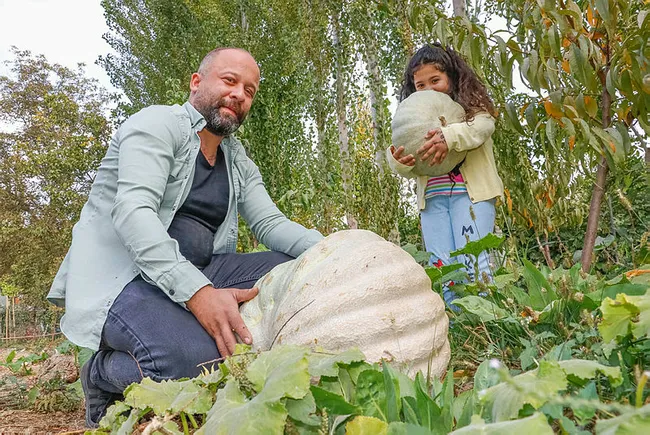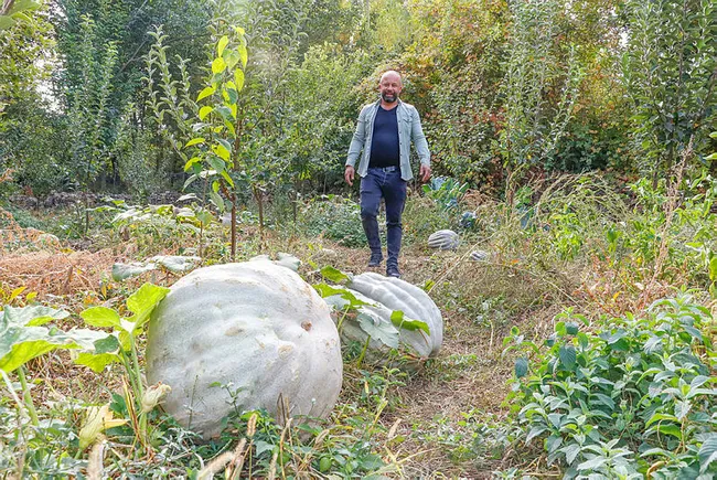 Şehir hayatından sıkılıp döndüğü memleketinde, dev kabaklar yetiştiriyor