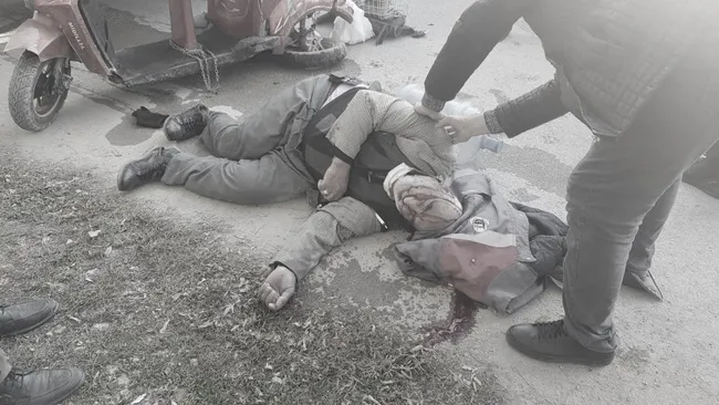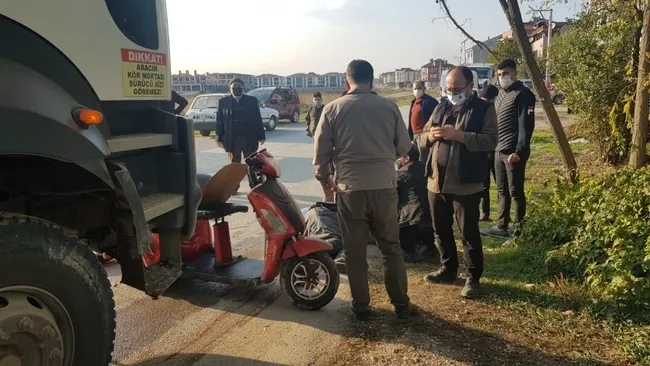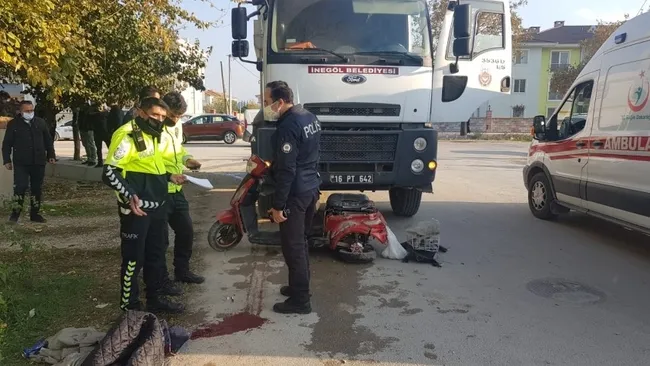Hüseyin K. idaresindeki 16 PT 642 plakalı kamyon ile Mehmet K'nin kullandığı elektrikli bisiklet çarpıştı. Çarpışmanın etkisiyle kamyon altında kalan talihsiz adam kanlar içerisinde kaldı.