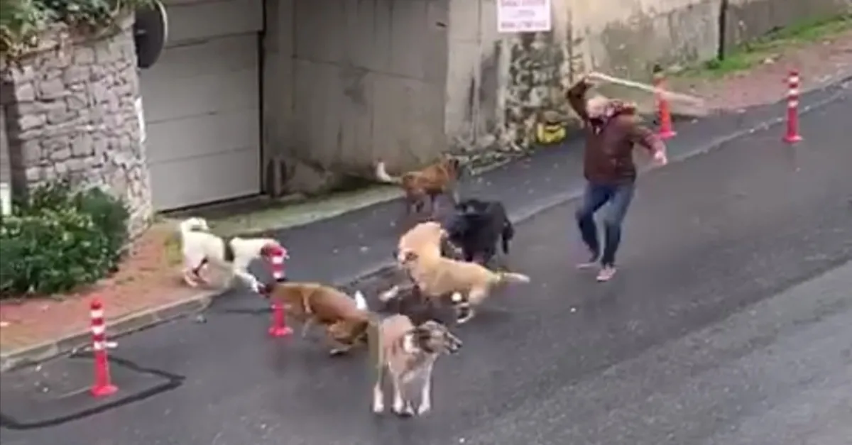 Göktürk’te bir grup başıboş köpeğin caddeden geçen vatandaşları ve motosikletli kuryeleri kovalamaya başlaması mahallelide korkuya sebep oldu. Vatandaşların köpekleri sopayla kovaladığı anlar ise kameralara yansıdı.