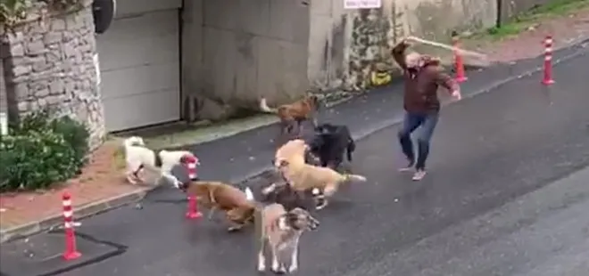 Kendi aralarında da kavga eden köpekler, mahalleli ve etraftaki insanları korkutmaya başladı. Vatandaşların dışarıya çıkmaya korktuğu semtte, birbirine girdiğini gören bir vatandaş sopayla köpekleri kovaladı.