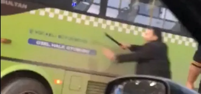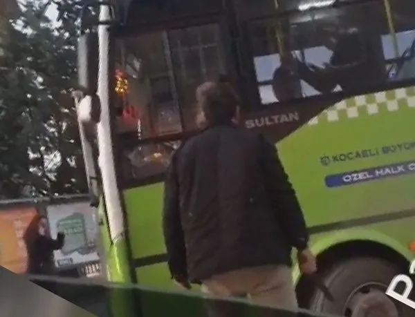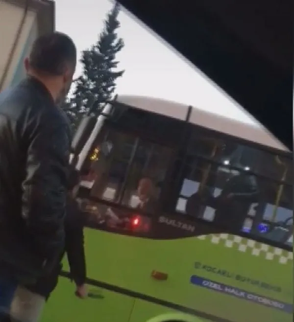 Kocaeli'de trafikte halk otobüsü sürücüsü ile tartışan bir kişi öfkesini kontrol edemedi. Öfkeli sürücü, çevredekilerin bakışları arasında tartıştığı otobüs şoförüne copla saldırdı.