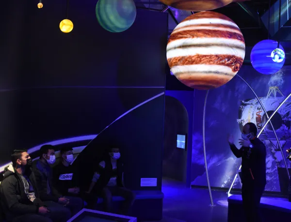 Güneş sistemini tartışan lise öğrencileri Bilim Merkezi'ni gezdi