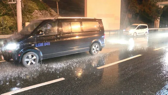 Tazyikle D-100 karayolu Edirne yönüne fışkıran su ilginç görüntü oluşturdu.