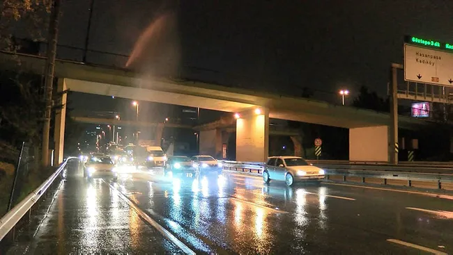 İstanbul’da Kadıköy-Acıbadem köprüsü üzerinden geçen su borusu patlayınca D-100 karayolundan geçen sürücüler şaşırtan görüntü oluştu. Yaklaşık 1 saat buyunca akan su ekiplerin müdahalesiyle kesildi.