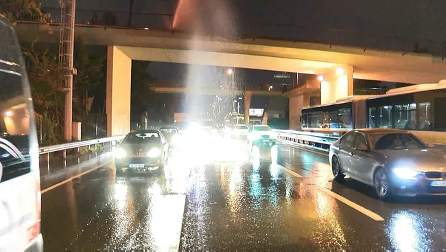 İstanbul’da sürücüleri şaşırtan görüntü! Köprü üzerinden geçen su borusu patladı