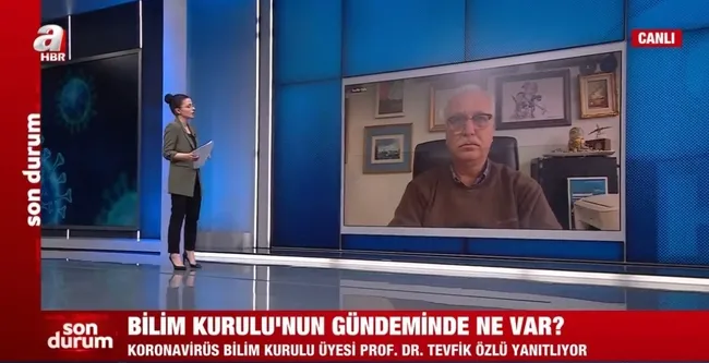 Son dakika haberleri... Koronavirüs Bilim Kurulu bugün saat 17'de Sağlık Bakanı Fahrettin Koca'nın başkanlığında videokonferans yöntemiyle toplanıyor. Toplantı öncesi Bilim Kurulu Üyesi Prof. Dr. Tevfik Özlü, toplantının gündemine dair bilgileri A Haber canlı yayınında açıkladı. Prof. Dr. Özlü, Türkiye'nin salgınla mücadelesindeki son durumu, aşıyla ilgili merak edilen tüm soruları ve alınan yeni kısıtlama tedbirlerinin sonuçlarının ne zaman verilere yansıyacağını açıkladı.