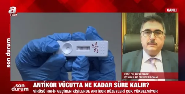 A Haber canlı yayınında koronavirüs tedavisi tamamlanmış 2 bin hastayı incelediklerini açıklayan İstanbul Tıp Fakültesi Dekanı Prof. Dr. Tufan Tükek yeni bulguları anlattı. Prof. Dr. Tükek Kovid-19 geçiren hastaları da tedbiri elden bırakmaması konusunda uyararak yeniden hastalığa yakalanma risklerinin olduğunu belirtti. İşte Prof. Tufan Tükek'in A Haber yaptığı o çarpıcı açıklamalar...
