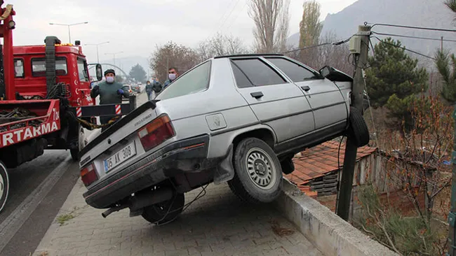Kaldırımla direk arasında kalarak sıkışan araç olay yerine gelen kurtarıcı ve vatandaşların yardımıyla çıkartıldı. Kendi aracının da kaygan zemin nedeniyle kaza yaptığını anlatan Sadık Hendek, "O araçtaki sürücüyü telefon direği kurtardı. Telefon direği olmasaydı adamın durumu çok vahim olabilirdi" diye konuştu.