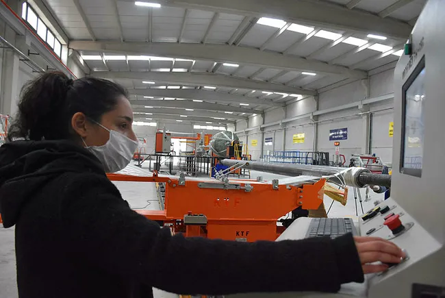 Savunma sanayisine ve denizciliğe ileri derecede kompozit ürünler hazırladıklarını kaydeden firmanın İcra Kurulu Başkanı Ertan Beğendi, yüksek basınçlı 200-250 barların üstünde tanklar yaptıklarını anlattı.