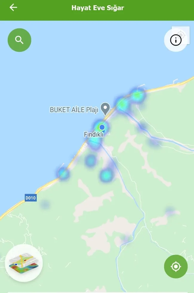 Son dakika haberleri... Rize'nin Fındıklı ilçesinde koronavirüs tedbirlerine uyulması ile Hayat Eve Sığar uygulamasında kırmızı ile kaplı harita, mavi renge döndü.