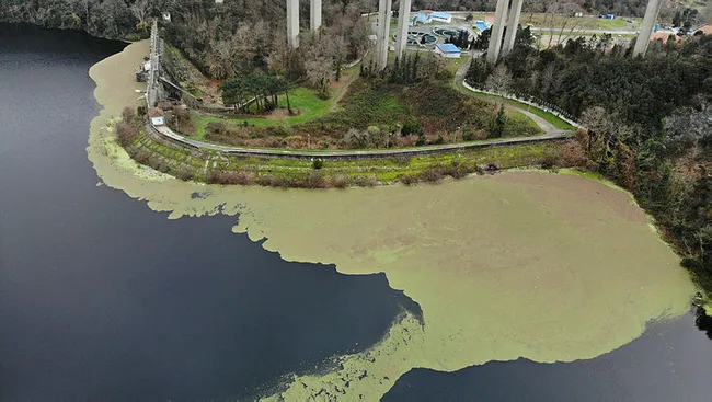 İstanbul'da Elmalı Barajı’nda korkutan görüntü! Yeşil tabaka ile kaplandı