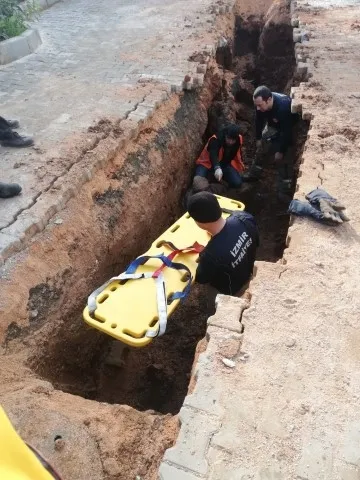 Göçük altında kalan işçi itfaiyenin çalışması sayesinde kurtarılırken, sağlık ekiplerinin ilk müdahalesinin ardından ambulansla Dokuz Eylül Üniversitesi Tıp Fakültesi Hastanesine kaldırıldı.