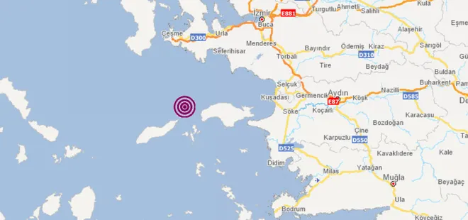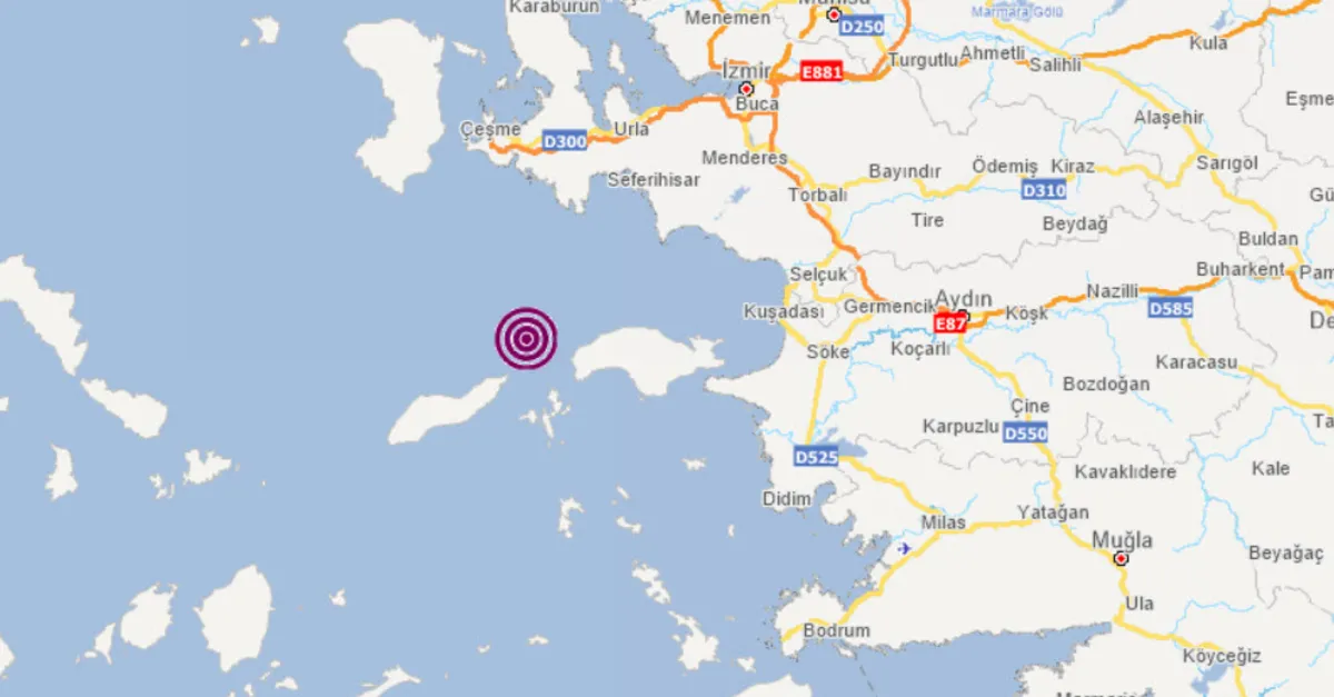 Deniz yüzeyinin 5,18 kilometre derinliğindeki depremin merkez üssünün İzmir'in Urla ilçesine 51 kilometre mesafede olduğu belirlendi.
