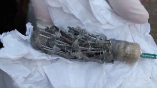 Uyuşturucu ticareti, otodan hırsızlık, uyuşturucu kullanma, bıçaklı yaralama, silahlı yaralama ve yağma gibi birçok suçtan kaydı bulunan İ.İ.'nin üzerinde yapılan aramada, çeketinin cebinden 10 santimetre uzunluğunda çivi ile güçlendirilmiş EYP çıktı.