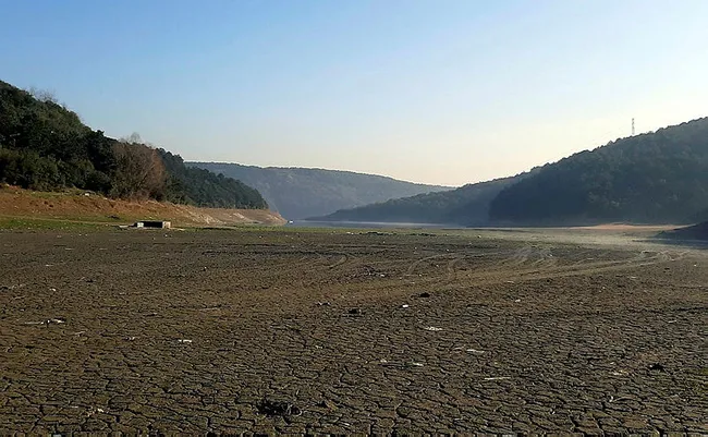 İstanbul'un içme suyu kaynaklarının yüzde 80'i boş durumda. İstanbul'un en kritik barajlarından biri de Sazlıdere. Sazlıdere Barajı'nın çekilen sularından sonra ortaya çatlak topraklar, ağaç gövdeleri çıktı. Kuşların da susuz kalan barajda yiyecek aradıkları görüldü.