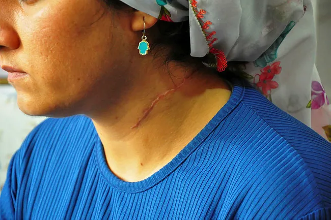 Manisa'da boşanmak istediği eşi Mikail Oymak (32) tarafından çocuklarının gözü önünde falçatayla boğazı kesilen ve tesadüfen gelen anne-babası tarafından ölümden kurtarılan Esra Oymak (31) yaşadığı korku dolu anları unutamıyor. Çocuklarıyla birlikte psikolojik tedavi gördüğünü söyleyen Oymak, cezaevinden tehditlerini sürdüren eşinin, tahliye edilmemesini istedi.