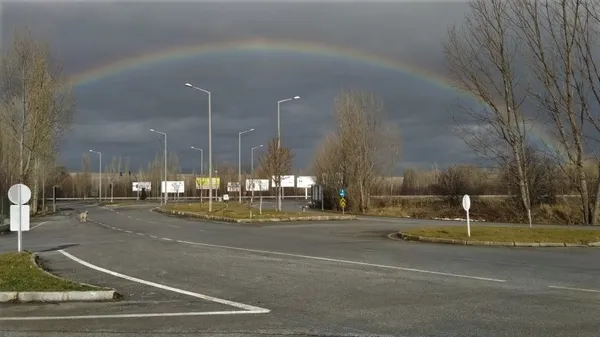 Akşam üzeri yağmur sonrası güneşin yüzünü kısa süreli göstermesiyle ortaya çıkan rengarenk gökkuşağı seyri doyumsuz bir manzara sundu.