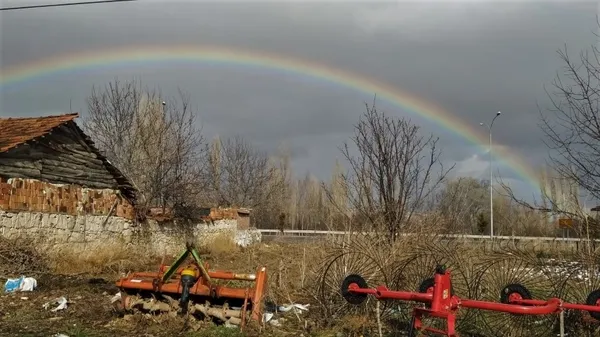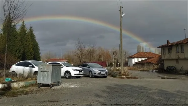 Sağanak yağan yağmurun ardından görülen gökkuşağı görenleri mest etti