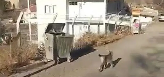 Cedit Paşa Mahallesi'nde sokakta dolaşarak yiyecek arayan vaşak, vatandaşlar tarafından cep telefonu kamerası ile görüntülendi. Caddede gezinen vaşak bir süre sonra araziye kaçarak gözden kayboldu.