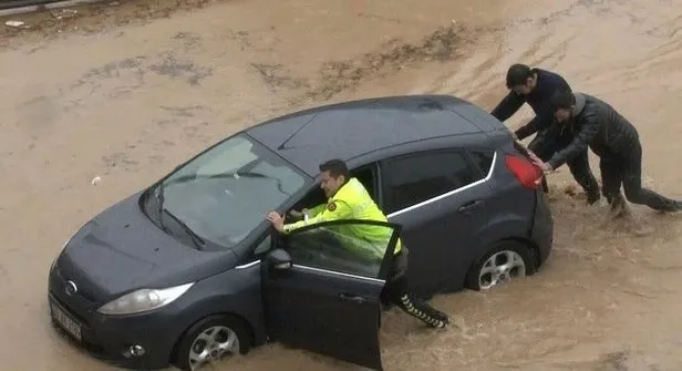 Sel nedeniye çok sayıda araç mahsur kalırken, bir vatandaş kano ile yolculuk yaptı. Bu anlar ise saniye saniye cep telefonu ile görüntülendi.