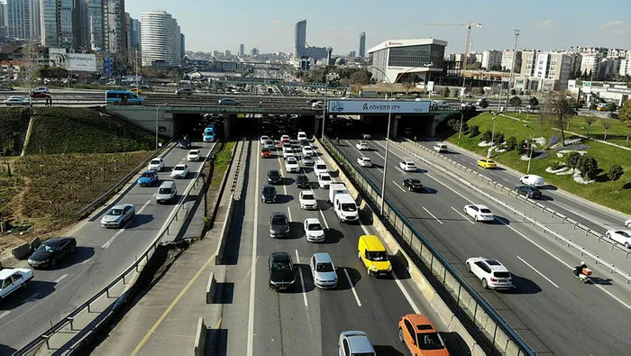E-5 karayolu İstanbul istikametinde yoğun trafik oluştu. Öte yandan E-5 karayolunda oluşan trafik yoğunluğu havadan görüntülendi.