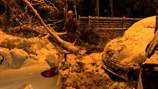 Caddede yürüyen 42 yaşındaki Nesrine Tombak'ın ve iki otomobilin üzerine ağaç devrildi.